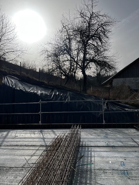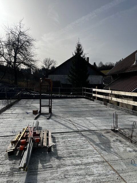 Plancher dalle béton plein d’épaisseur 20cm, isolation thermique et phonique, chape flottante.