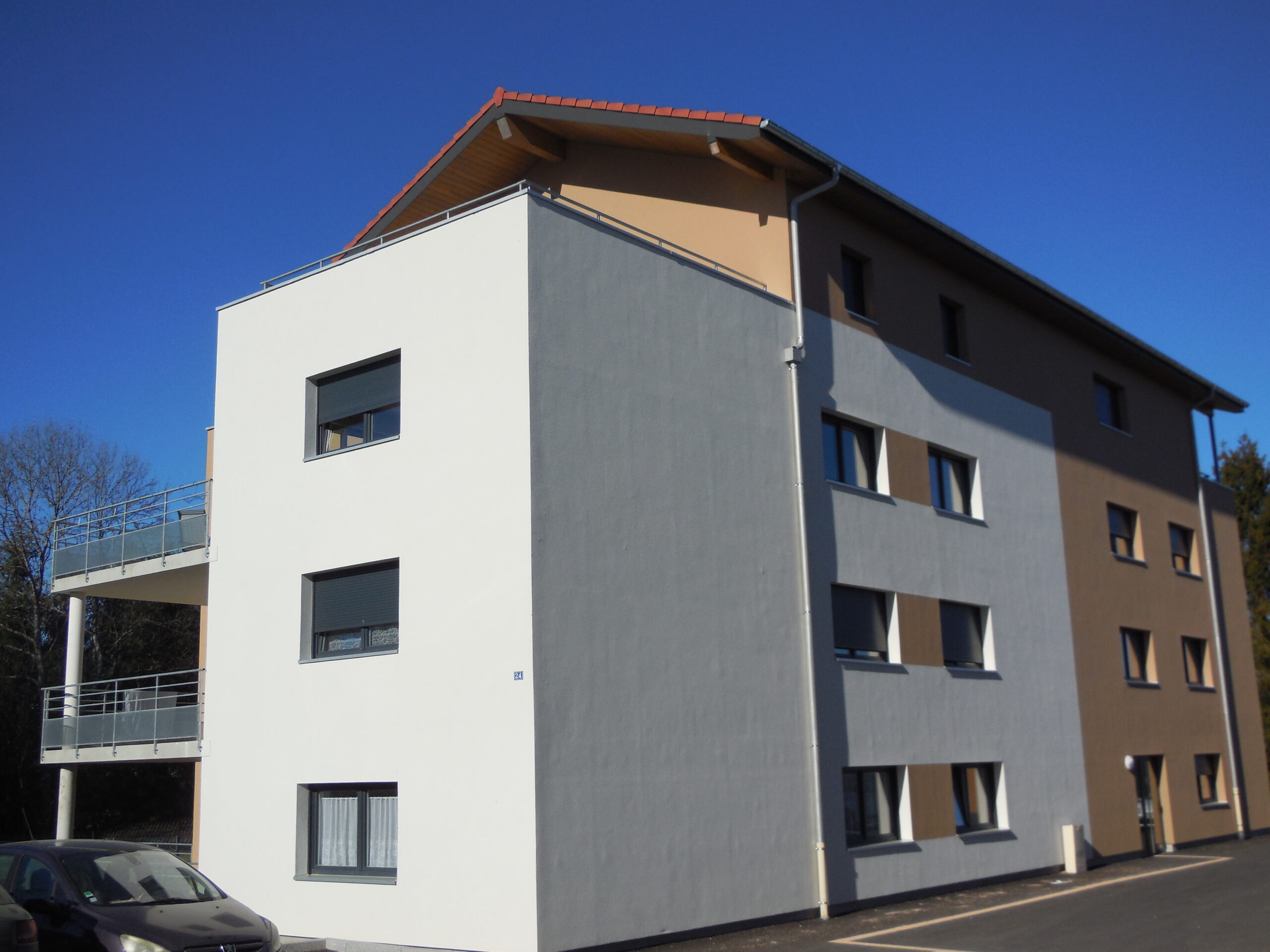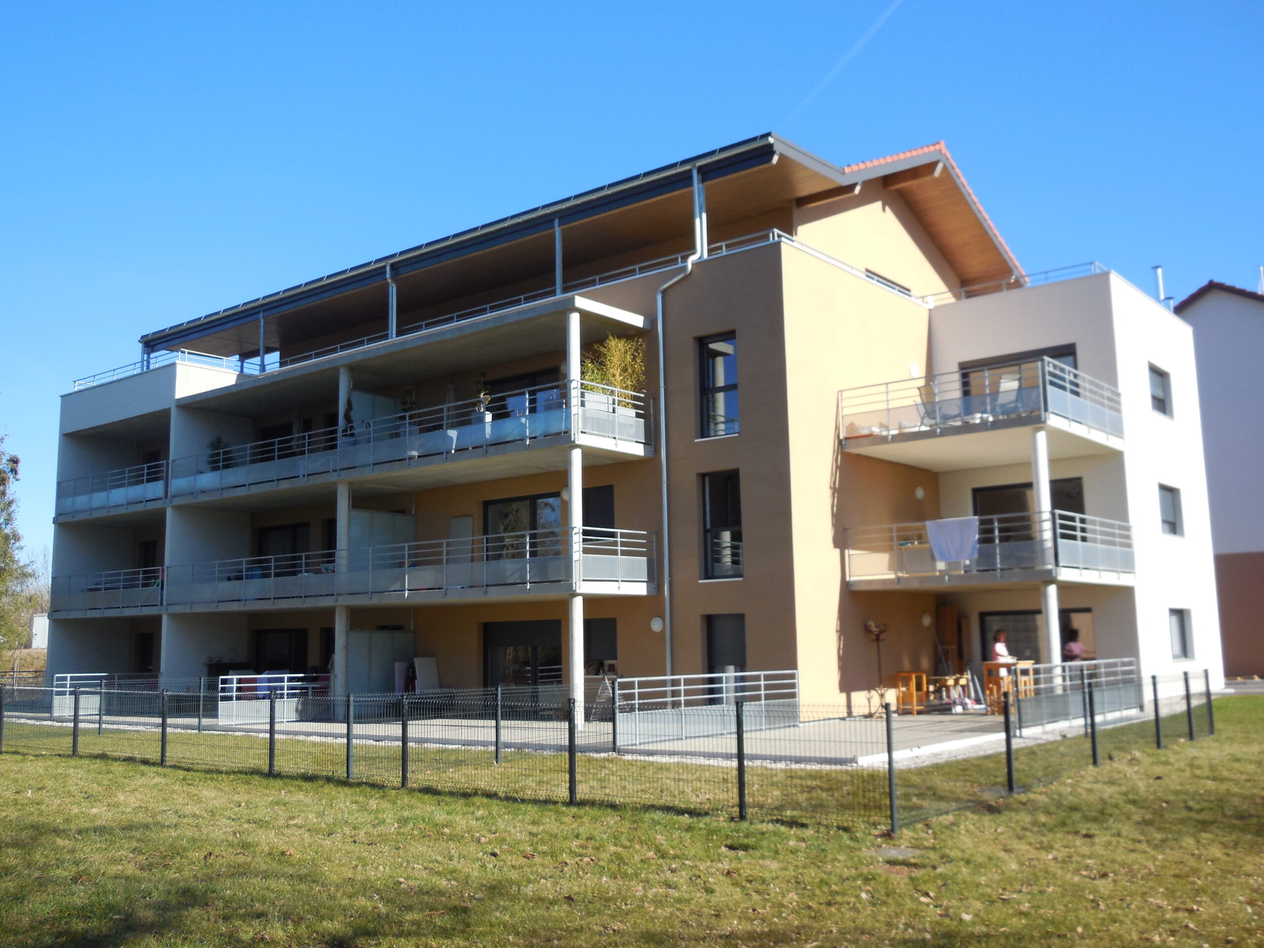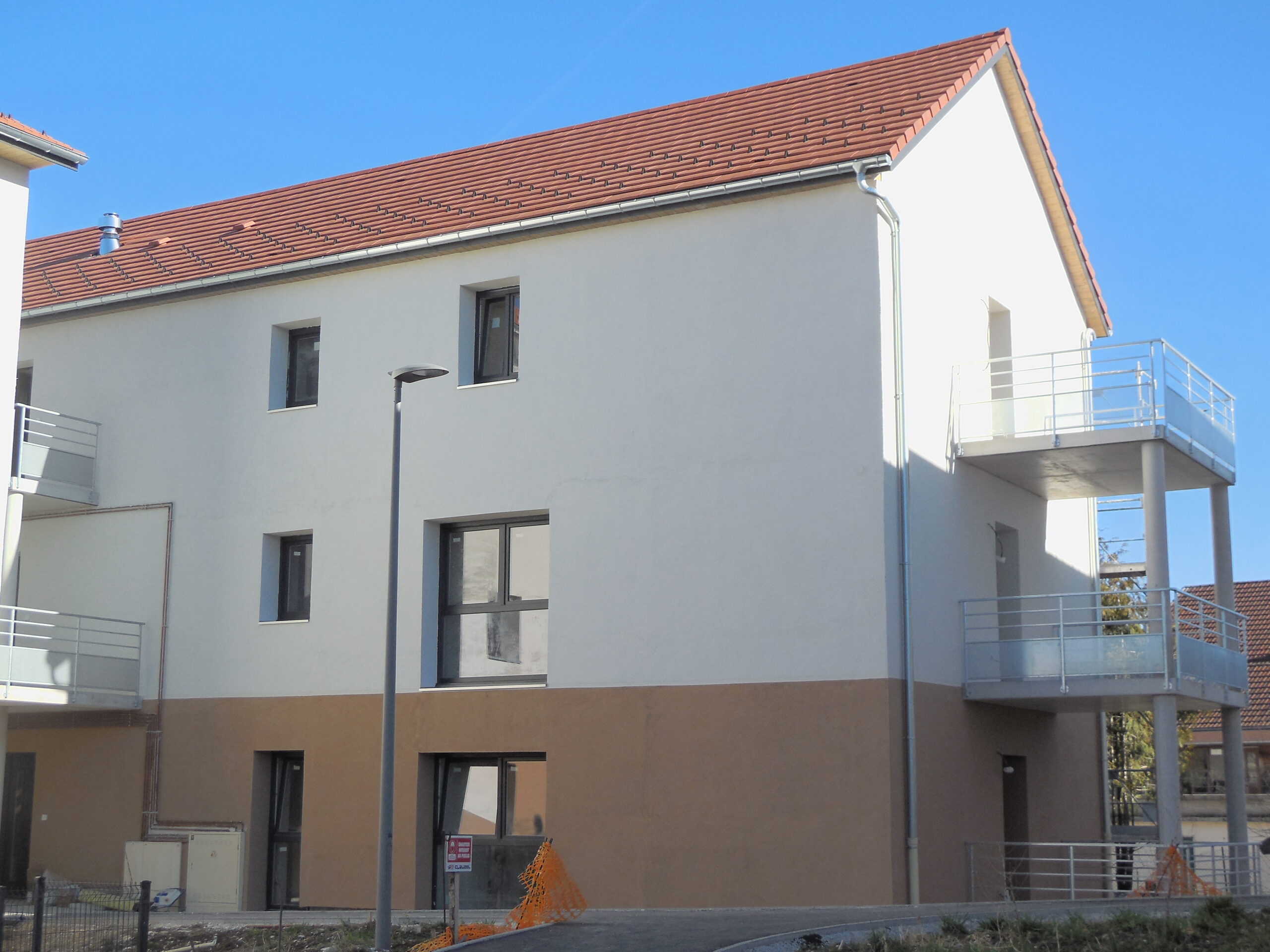 Deux bâtiments neufs ont été construits, comportant chacun 13 appartements et des garages en sous-sol.