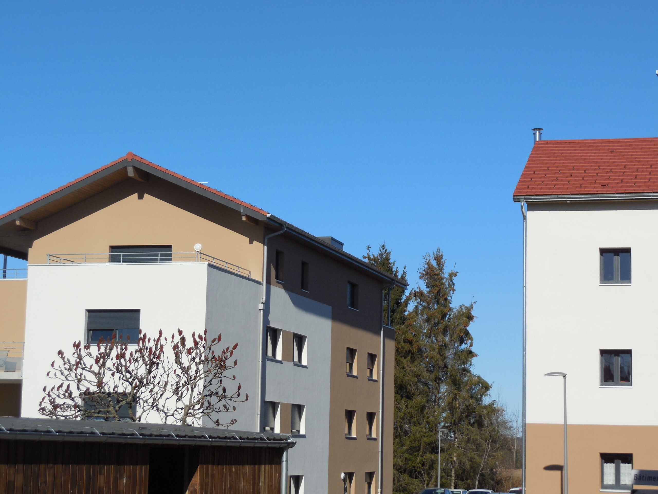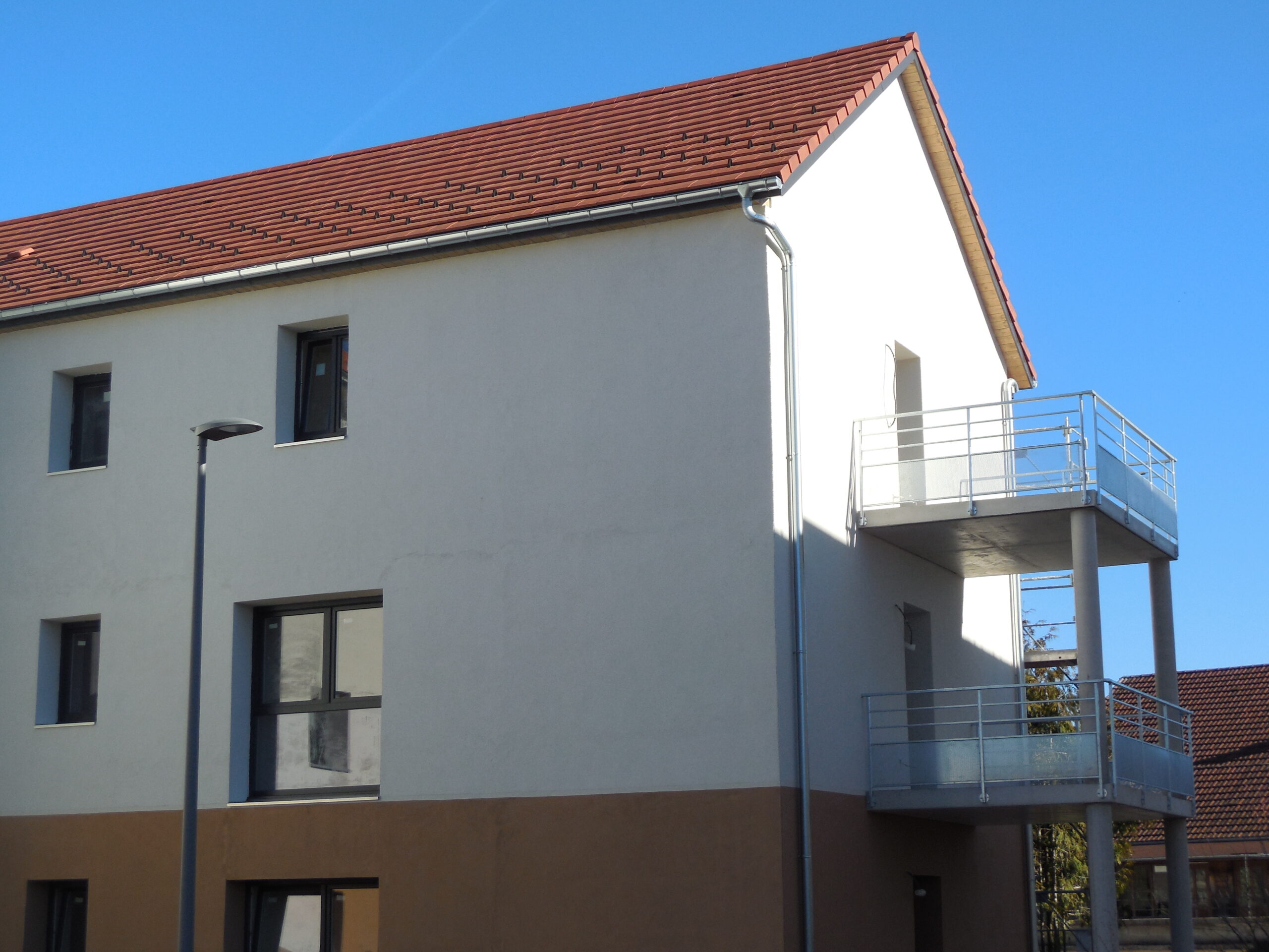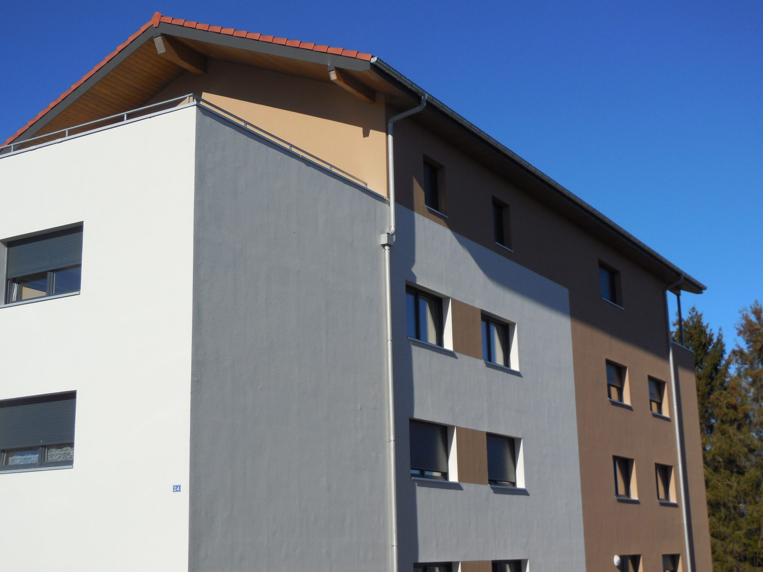 Deux bâtiments neufs ont été construits, comportant chacun 13 appartements et des garages en sous-sol.